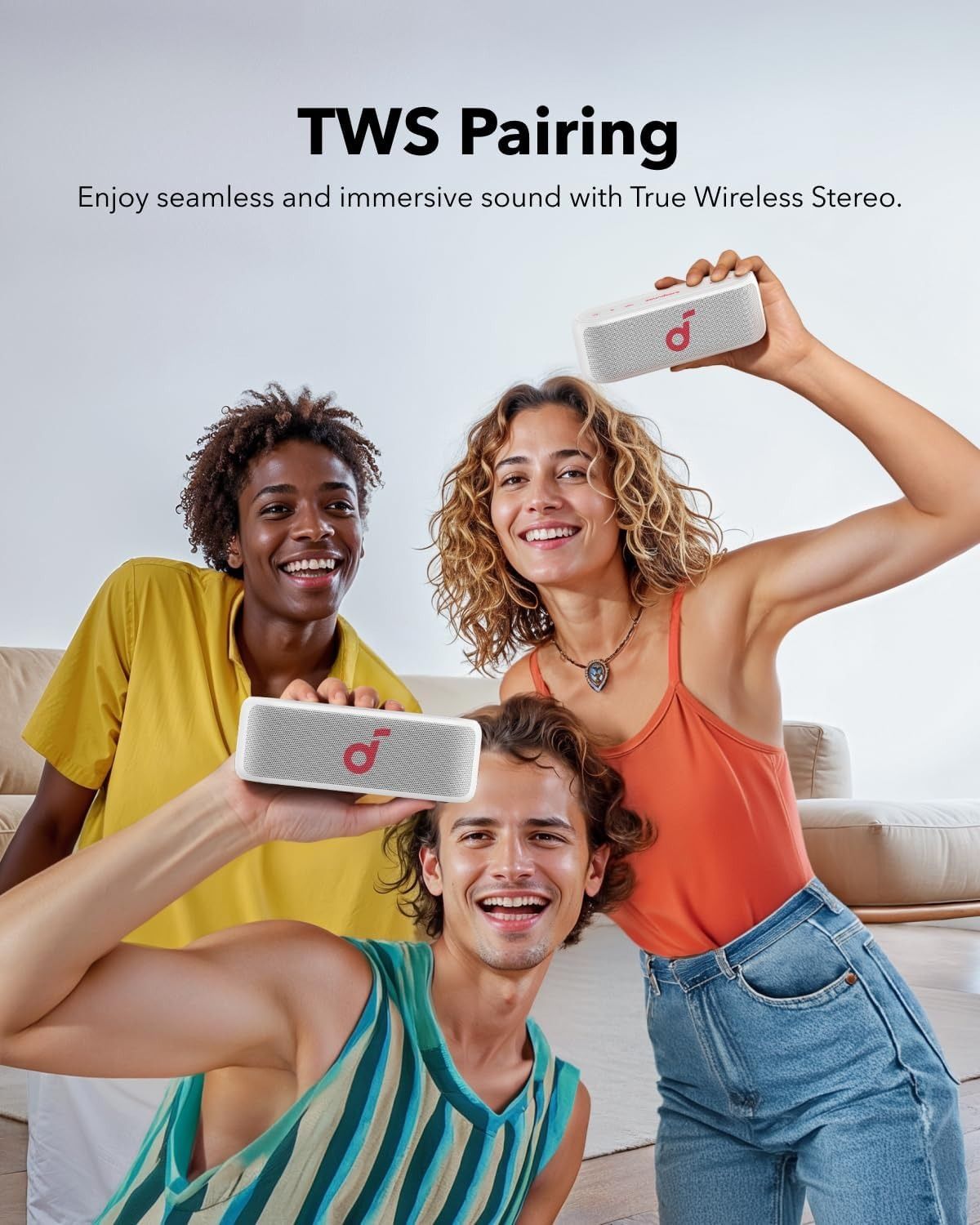 Колонка створена для руху: компактний та легкий корпус легко поміщається в рюкзак чи сумку, а водонепроникний захист за стандартом IPX7 дозволяє використовувати її навіть у дощ або біля води — на пляжі, біля басейну чи під час походів. Ви можете спокійно насолоджуватись улюбленими треками, не хвилюючись за бризки чи випадкове занурення.