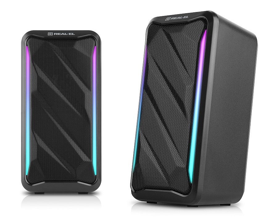 Мультимедійна акустична система REAL-EL S-130 – це легке та доступне рішення для озвучування комп’ютера чи ноутбука. АС оснащена вбудованим підсилювачем та акустичним кабелем, тому її можна швидко підключити практично до будь-яких джерел аудіосигналу. Живлення здійснюється через USB-порт ПК, ноутбука або через блок живлення 5V DC за допомогою вбудованого кабелю USB.