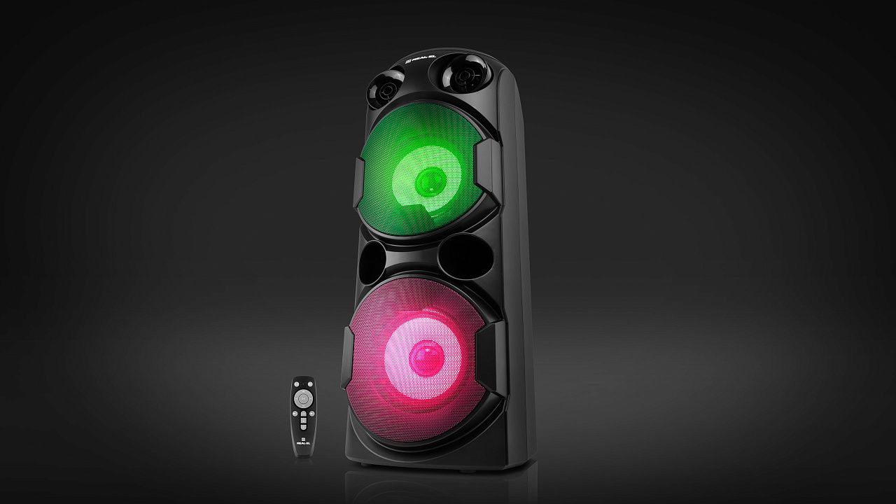 REAL-EL X-780 - це потужна 80Вт-на портативна акустична система. Вона оснащена двома динаміками 2 х O 5.7" (145 мм) + 2 х O 1.25" (32 мм), які забезпечують глибокий бас, яскраву середину та чіткі високі частоти для неймовірного захоплюючого звучання.