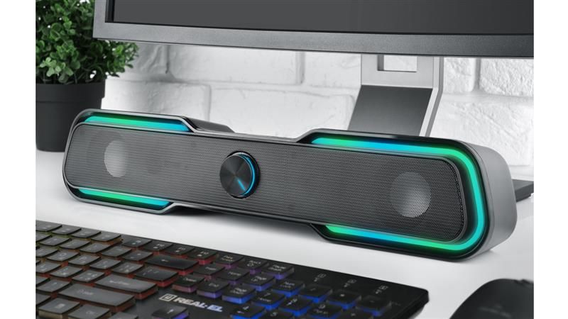 Саундбар REAL-EL S-180 це якісна звукова панель з RGB підсвічуванням для прослуховування музики та озвучування аудіо, відео контенту. Модель S-180 це компактна технологічна та сучасна альтернатива класичним колонкам, яка зазвичай розміщується під монітором.