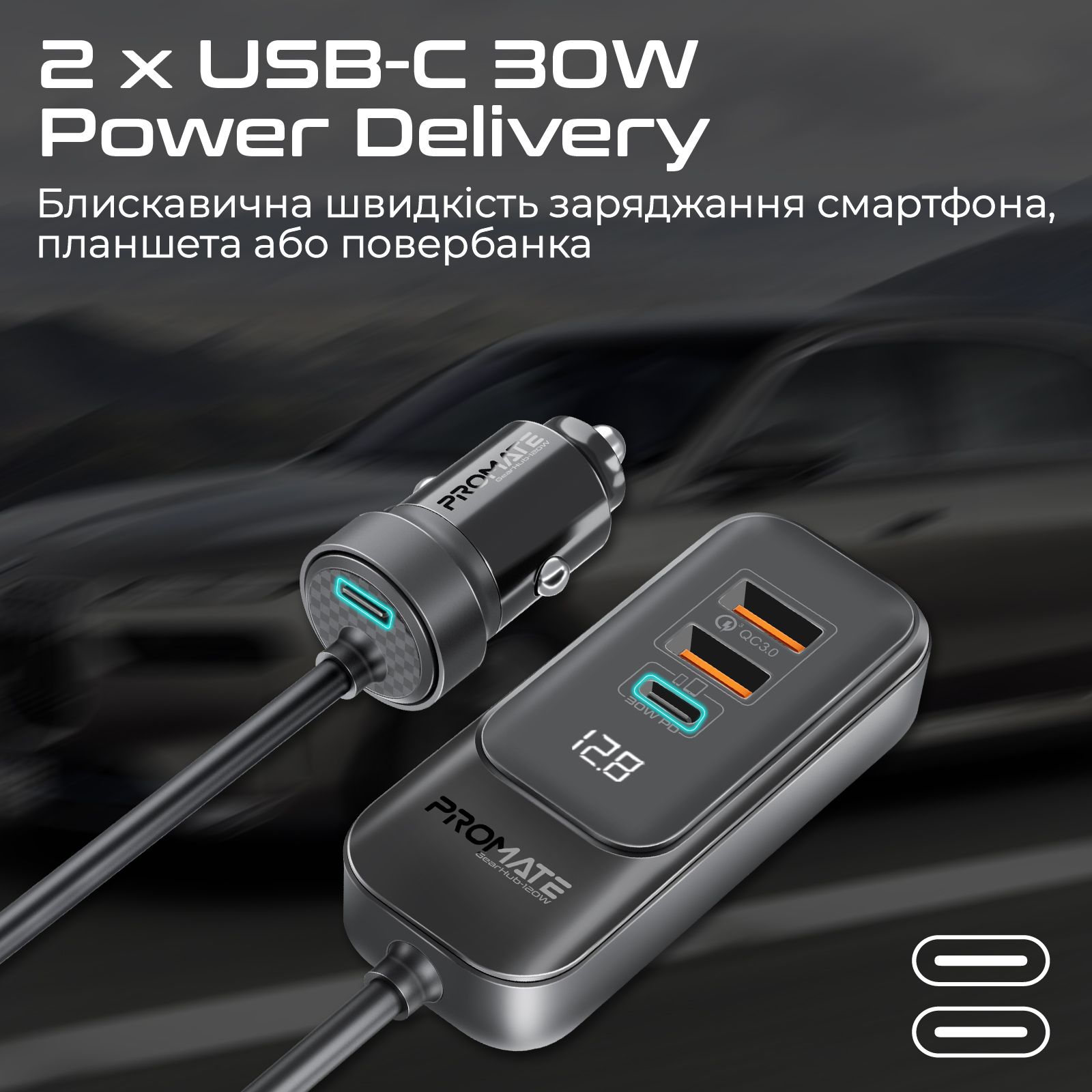 Автомобільний зарядний пристрій Promate GearHub 120W Black