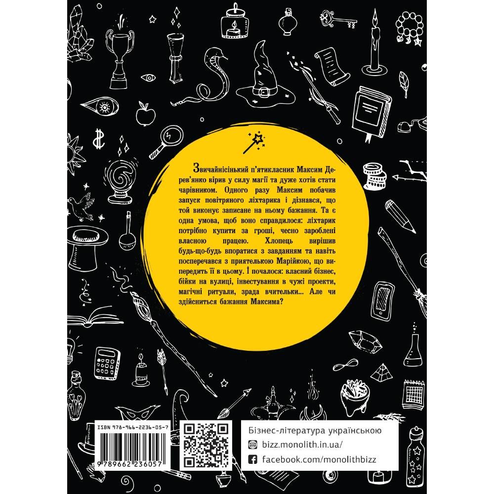 Хто не мріяв мати чарівну паличку? П’ятикласник Максим Дерев’янко вірив у силу магії та дуже хотів стати чарівником, як Гаррі Поттер. Одного разу Максим побачив запуск повітряного ліхтарика і дізнався, що той виконує записане на ньому бажання. Та є одна умова, щоб воно здійснилося: ліхтарик потрібно купити за гроші, чесно зароблені власною працею. Хлопець вирішив будь-що-будь впоратися із завданням та навіть посперечався з приятелькою Марійкою, що випередить її в цьому. Та вони й не здогадувалися, до яких дорослих пригод приведе дитяча суперечка!