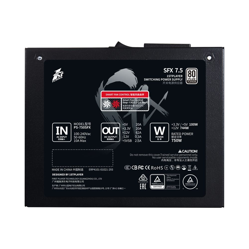 1stPlayer PS-750SFX - універсальний і надійний блок живлення потужністю 750 Вт, який відповідає сучасним потребам персональних комп’ютерних систем.