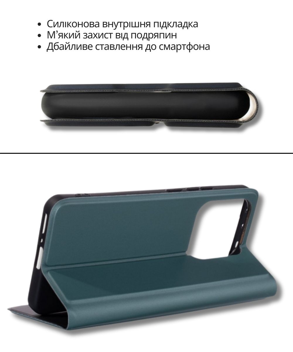 Завдяки тонкій поверхні чохол щільно прилягає до телефону, а вбудовані магніти дозволяють легко відкривати та закривати чохол.