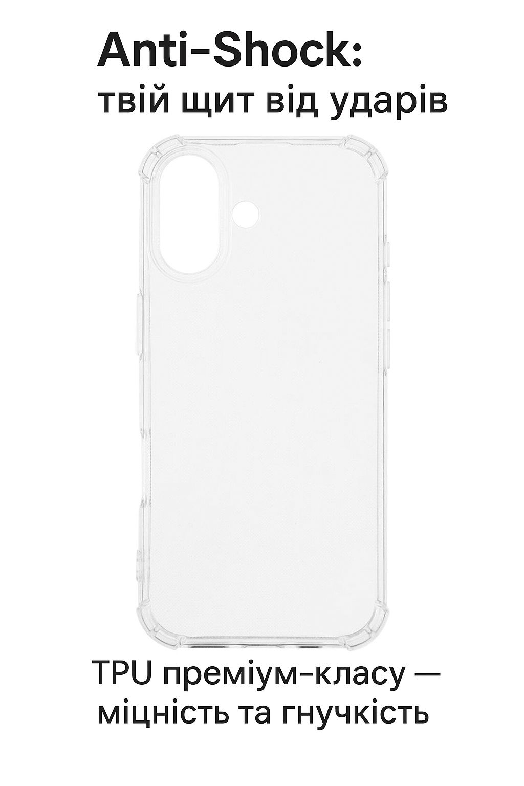 Anti-Shock панель забезпечує захист вашого телефону від падінь, ударів та подряпин. Матеріал TPU є еластичним, що дозволяє панелі адаптуватися до форми вашого смартфону та забезпечує зручний доступ до усіх кнопок та портів.