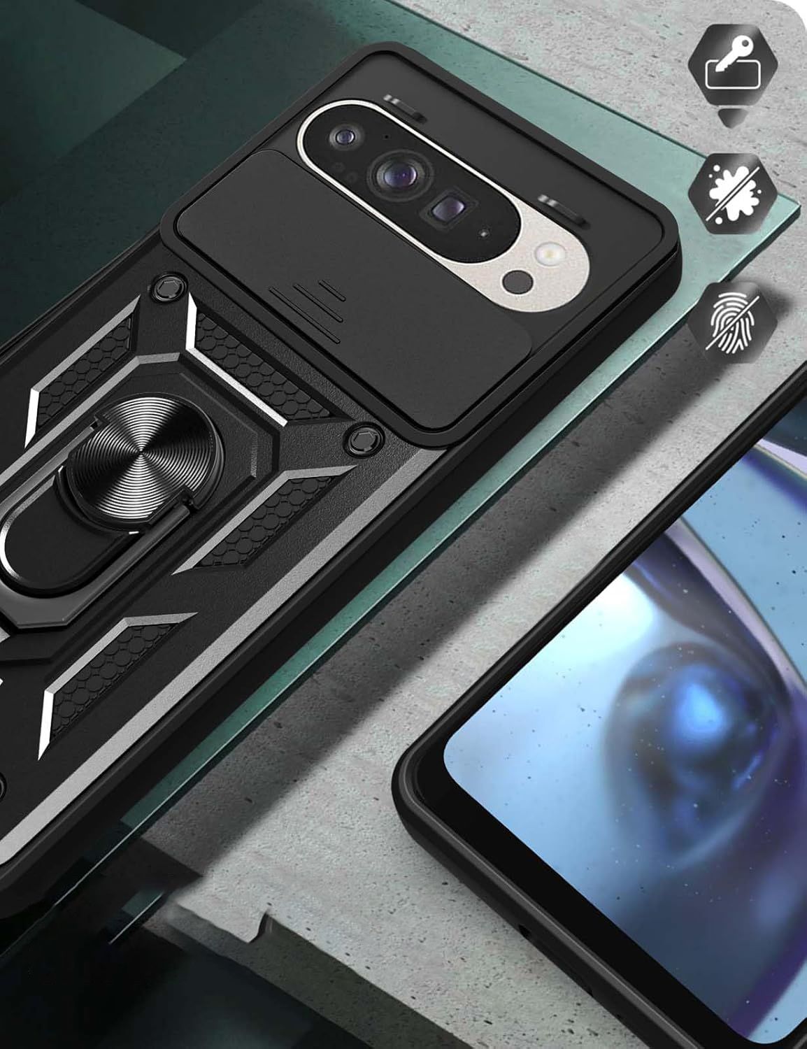 Гнучка силіконова панель має жорсткий металізований корпус та кільце-підставку для пальця. Чохол здатний витримати навіть сильні удари та подряпини.