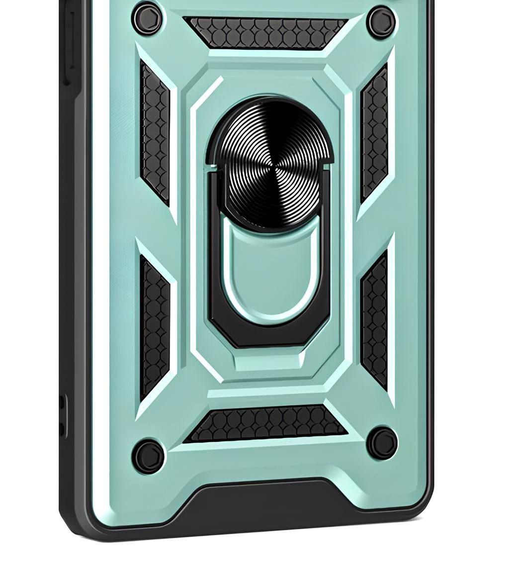 Гнучка силіконова панель має жорсткий металізований корпус та кільце-підставку для пальця. Чохол здатний витримати навіть сильні удари та подряпини.
