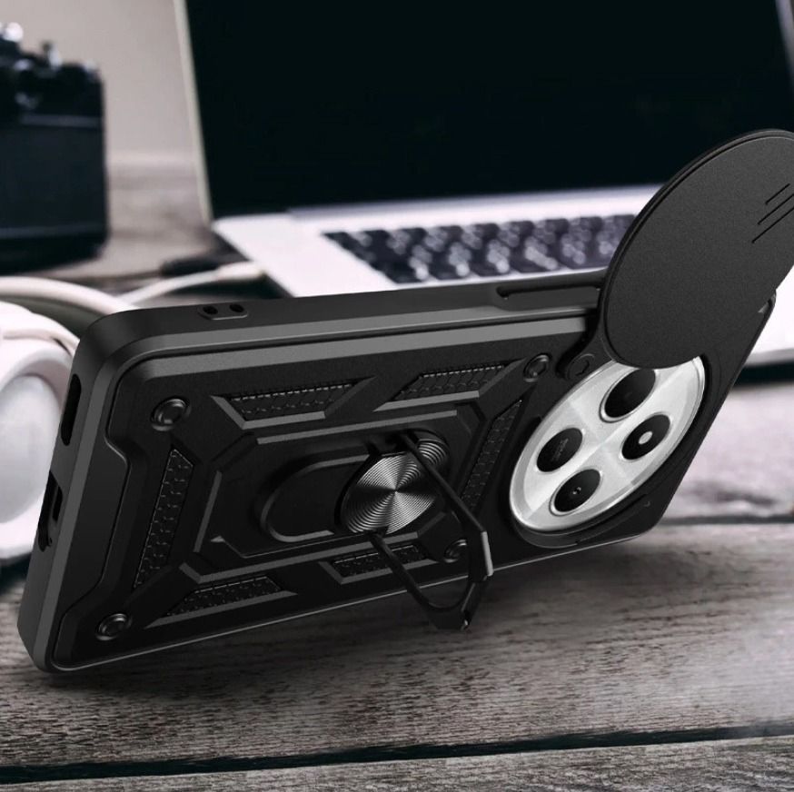 Гнучка силіконова панель має жорсткий металізований корпус та кільце-підставку для пальця. Чохол здатний витримати навіть сильні удари та подряпини.