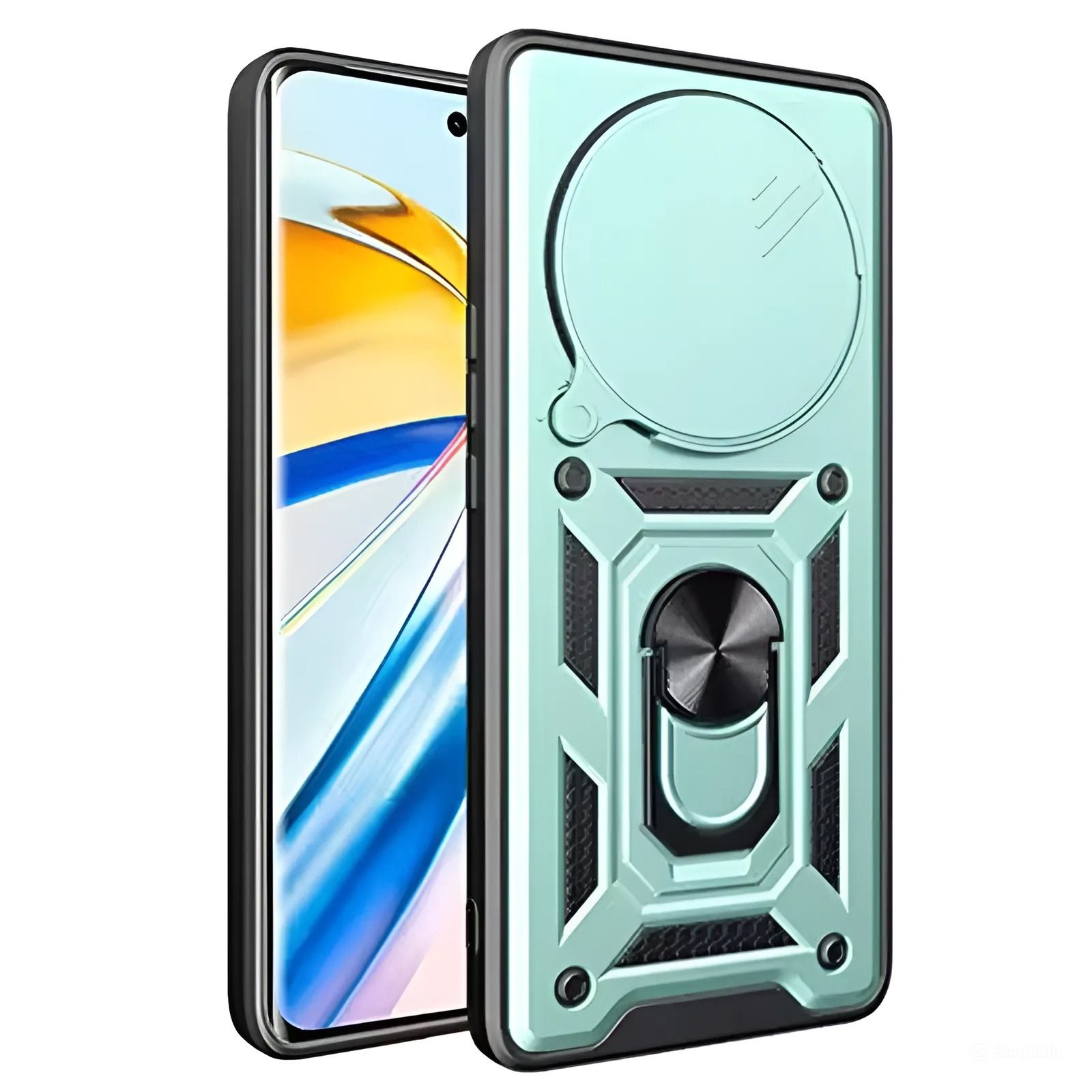 Гнучка силіконова панель має жорсткий металізований корпус та кільце-підставку для пальця. Чохол здатний витримати навіть сильні удари та подряпини.