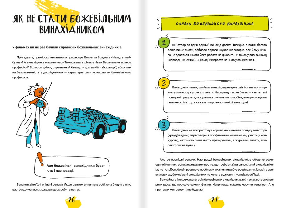 На допомогу вам уже поспішає неймовірна й унікальна книжка, що допоможе вашій дитині поринути у цікавий світ винахідництва. Дитина дізнається безліч прикладів, порад, правил та рекомендацій для подорожі у світ креативу, що допоможуть розвинути інтелектуальні й творчі здібності, сформують неординарне мислення, а також за допомогою найцікавіших завдань — розбурхають уяву та змусять поглянути на світ вже іншими очима – очима винахідника!