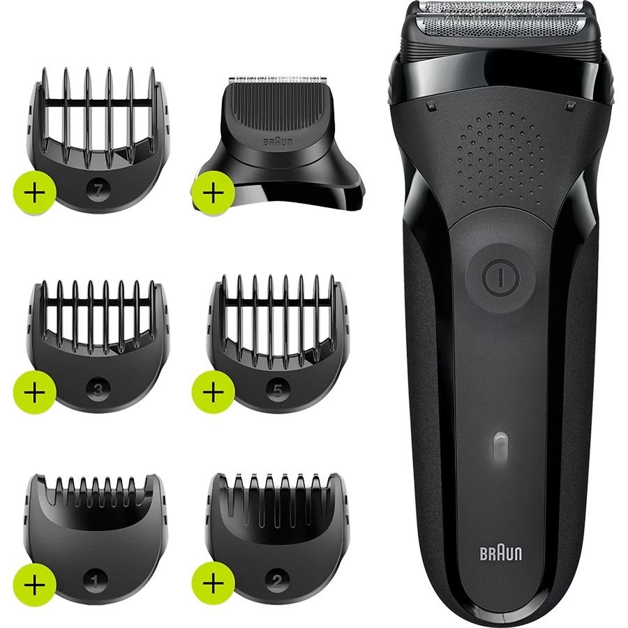 Кращі бритви повинні бути, по можливості, універсальними і Braun Series 3 300BT Black з таким завданням справляється чудово! Потрійна система сіткового гоління з плаваючими (тобто рухливими) елементами легко збриває навіть дуже густу щетину начисто. Якщо ж ви вирішите трохи підправити лінію волосся біля скронь або, наприклад, підрівняти бороду, скористайтеся змінними гребенями. Їх у базовій комплектації поставляється 5 різної довжини (від 1 до 7 мм). Плюс знімна насадка-триммер. Чохол, а т.ж. повний набір для стайлінгу з гребенями та змінний ріжучий блок завжди можна замовити окремо у розділі аксесуарів.