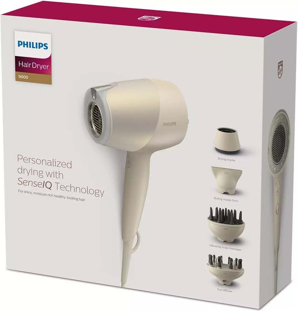 Разом з феном ви отримуєте 4 насадки, які збільшують можливості використання фена: концентратор, дифузор, масажер та насадка для швидкого сушіння. Фен Philips з технологією SenseIQ самостійно розпізнає насадку і обирає відповідні налаштування сушіння.