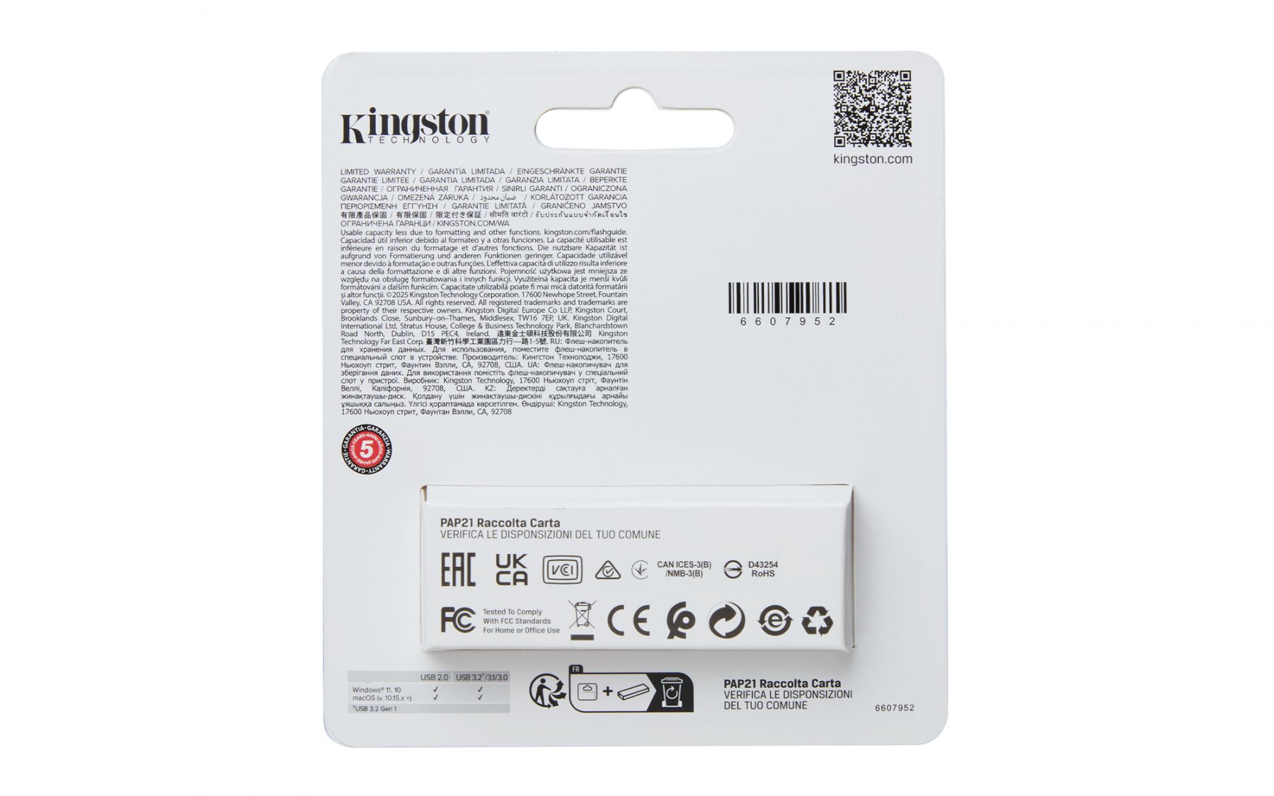 Kingston DataTraveler Exodia S — це сумісний із USB 3.2 Gen 1 накопичувач базового рівня для ноутбуків, настільних ПК та інших цифрових пристроїв. DT Exodia S дозволяє легко переносити та зручно зберігати документи, відео, музику та багато іншого. Накопичувачі DT Exodia S оснащені поворотною кришкою, виконаною в різних кольорах залежно від ємності, що у старшої моделі досягає 512 ГБ. Завдяки своєму дизайну накопичувач є зручним рішенням для зберігання даних на роботі, в школі чи вдома. DT Exodia S супроводжується 5-річною гарантією, безкоштовною технічною підтримкою та легендарною надійністю Kingston.