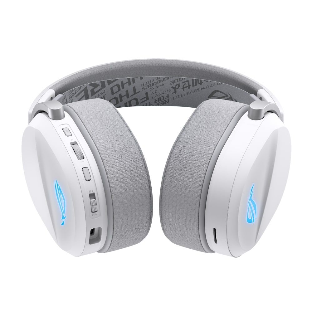 М’яка еластична оголов’я з трьома рівнями регулювання зменшує тиск, щоб забезпечити зручну фіксацію гарнітури під час руху або гри протягом усього дня. На оголов’ї нанесено символіку ROG, і його можна від’єднати, щоб адаптувати до форми голови.