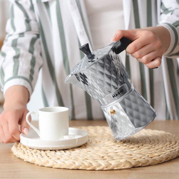 Класична гейзерна кавоварка Magio чудово підходить для приготування традиційного еспресо.