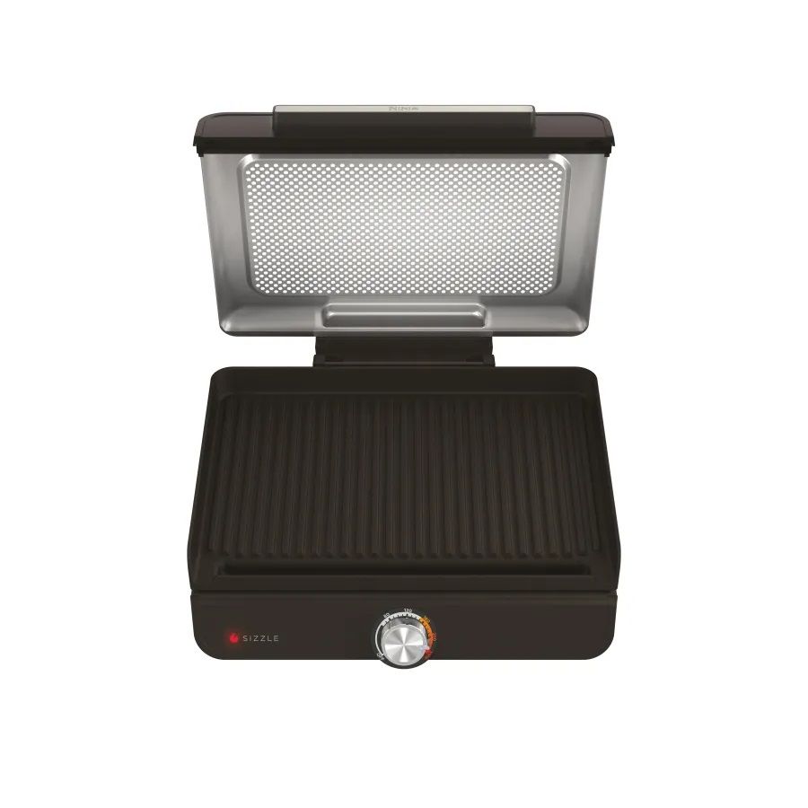 Створюйте собі найкращий збалансований раціон за допомогою гриля Ninja Sizzle GR101EU. Ви зможете готувати різноманітні страви – від стейків та бургерів до соковитих овочів-гриль та морепродуктів. Вбудований термостат дозволяє контролювати температуру для досягнення оптимального результату кожного приготування. Можливість готувати при високих температурах до 260 °C робить цей гриль ідеальним для швидкого та ефективного смаження. А кришка гриля, що знімається, має вузькі отвори для рівномірної циркуляції гарячого повітря, що дозволяє уникнути зайвого диму. Основна робоча поверхня варіюється між двома панелями, рельєфною та гладкою планчою.