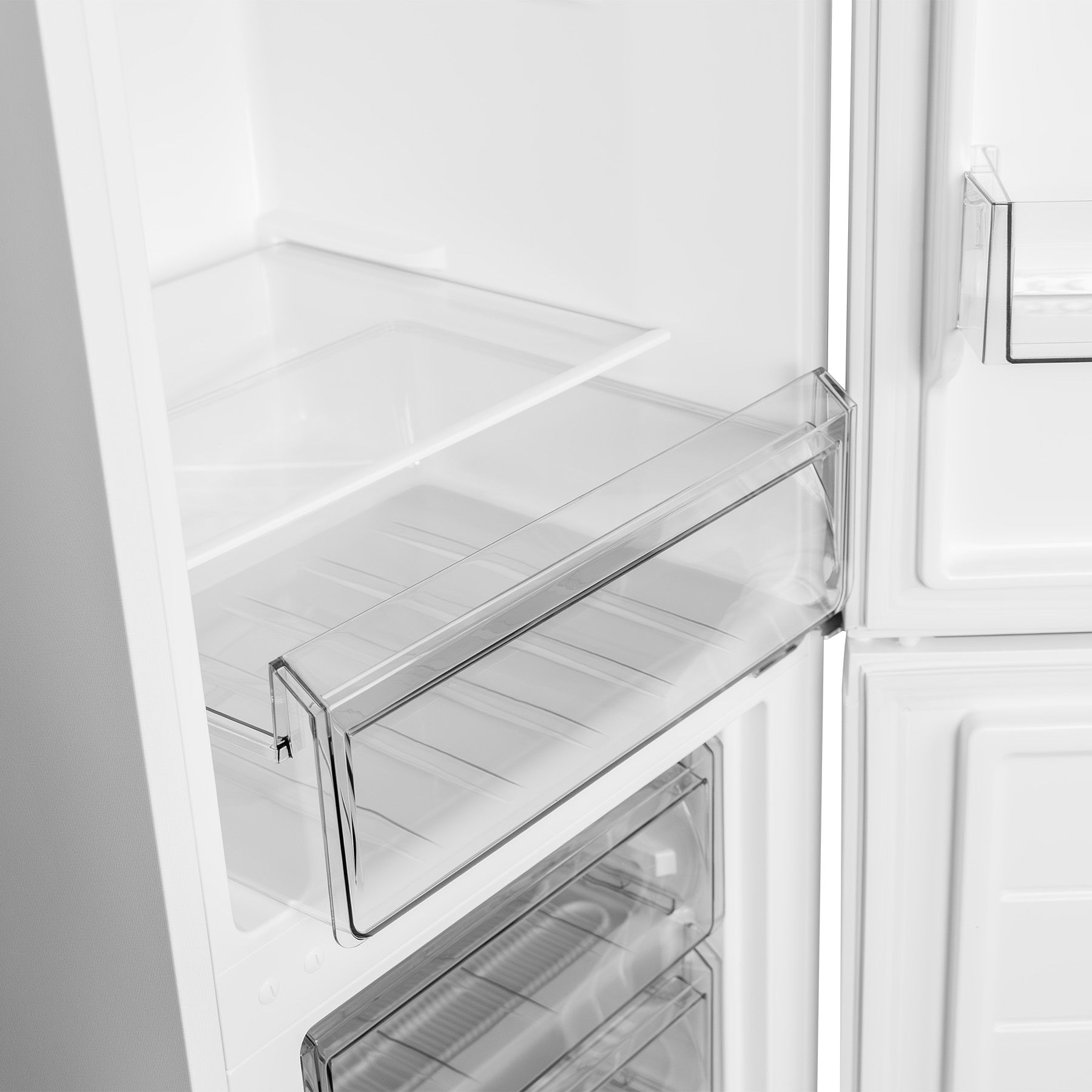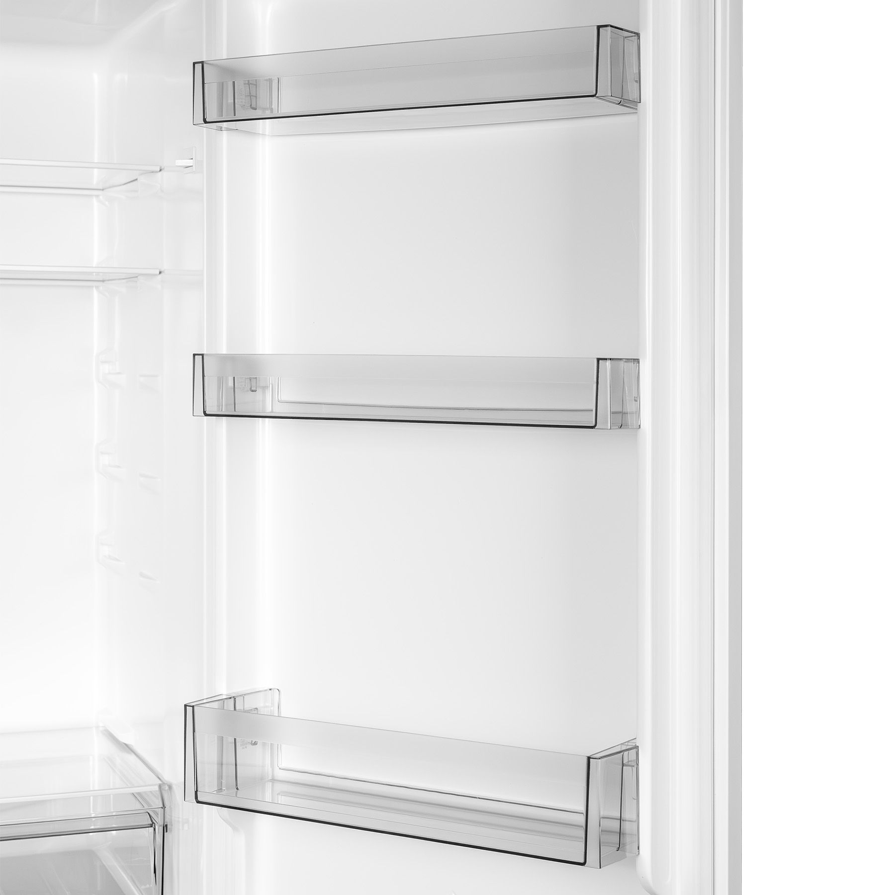 Холодильний відсік має напівпрозорий плафон лампи, що не перешкоджає LED-освітленню, яке розташоване зверху. Три полиці виконані зі скла з пластиковим огранюванням. Є три продуктові пластикові шухляди, один кріспер-бокс із пластику зі скляною кришкою та пластиковим обмеженням. Морозильна камера - це три ящики для заморожування продуктів. За бажання можна додати лоток морозилки, а за додаткову суму - підставку для заморожування льоду й окремий відсік для неї.
