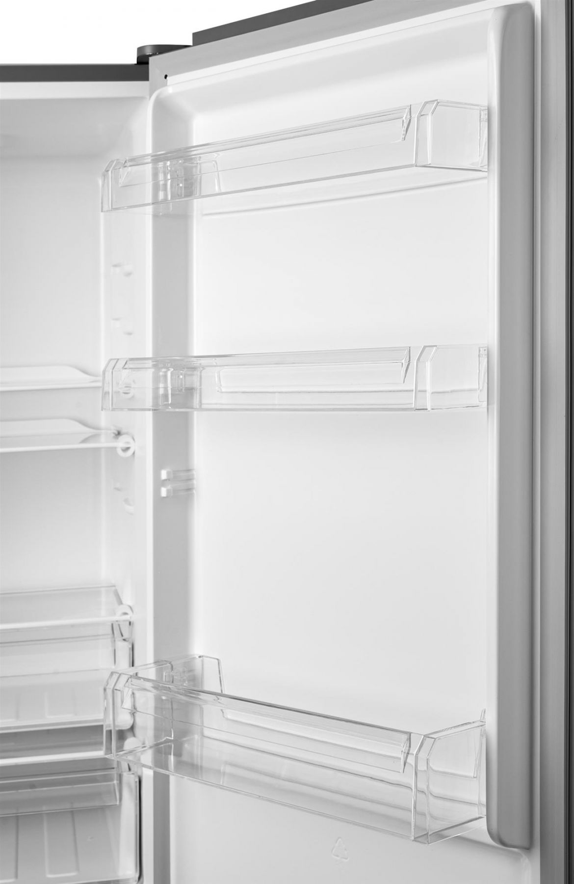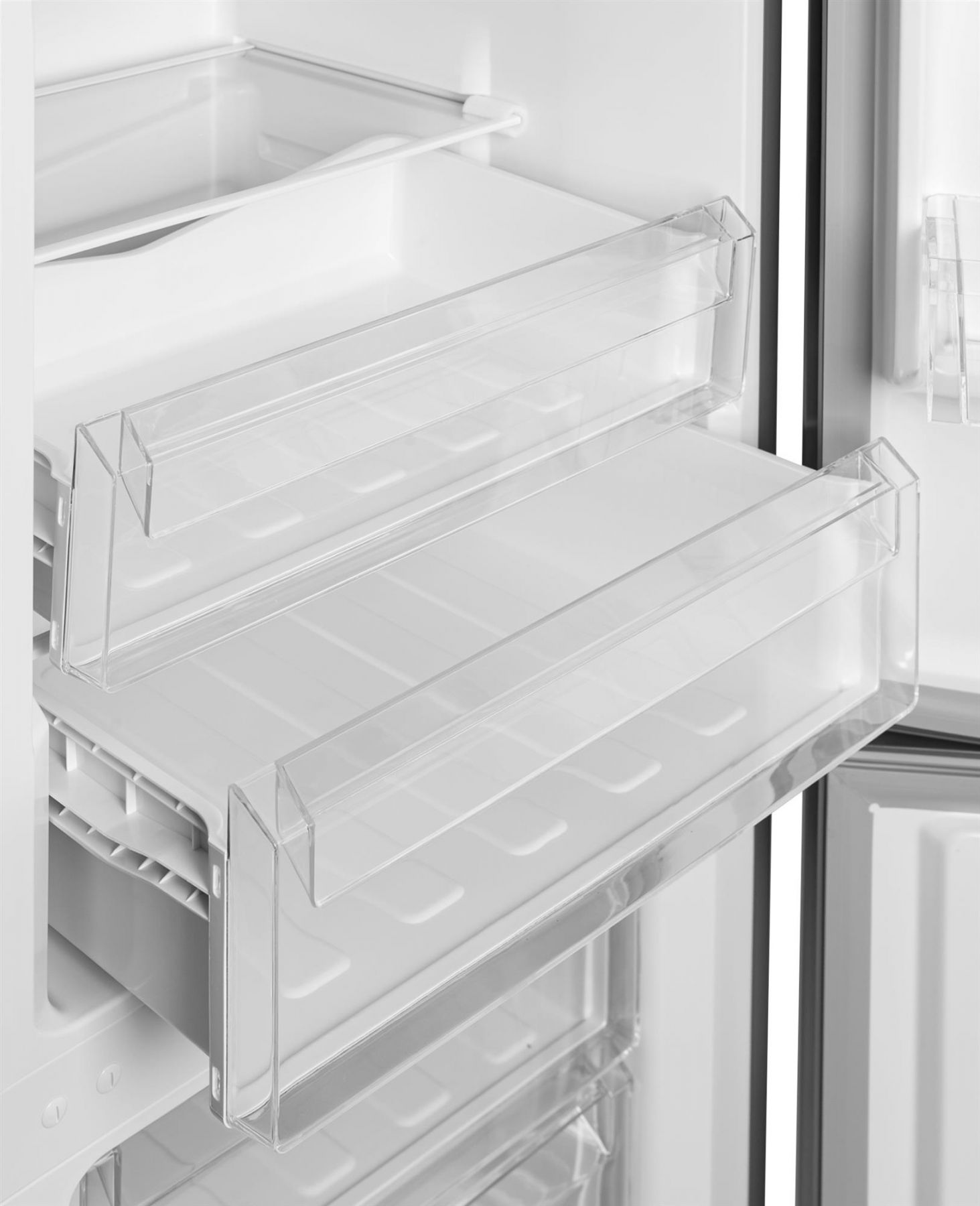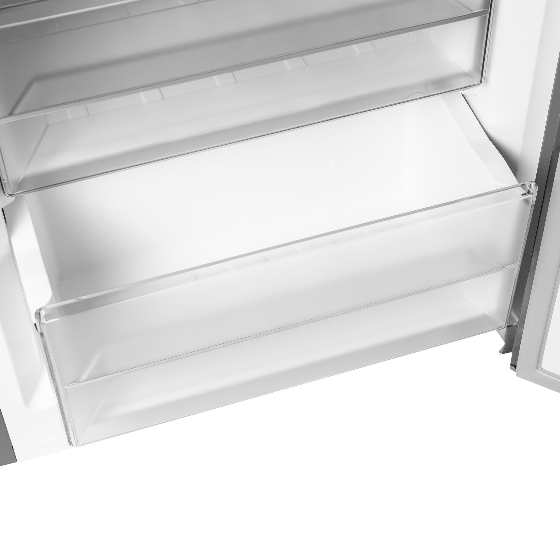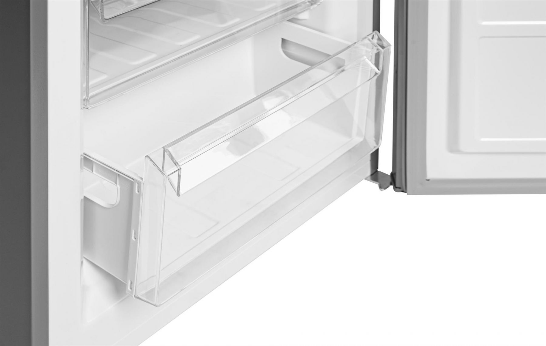 Холодильний відсік зверху освітлюється типом LED і закритий напівпрозорою кришкою. 3 скляні полиці з пластиковими "обідками" вміщують в себе максимальну кількість продуктів. Усередині розташовані панель налаштувань та інтерфейс користувача LED. Морозилка складається з трьох прозорих ящиків.