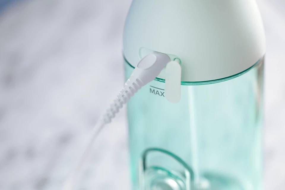 Унікальна хрестоподібна насадка Quad Stream очищає ретельно завдяки хрестоподібному потоку води у чотирьох напрямках, охоплює максимальну площу міжзубних проміжків та ясен.