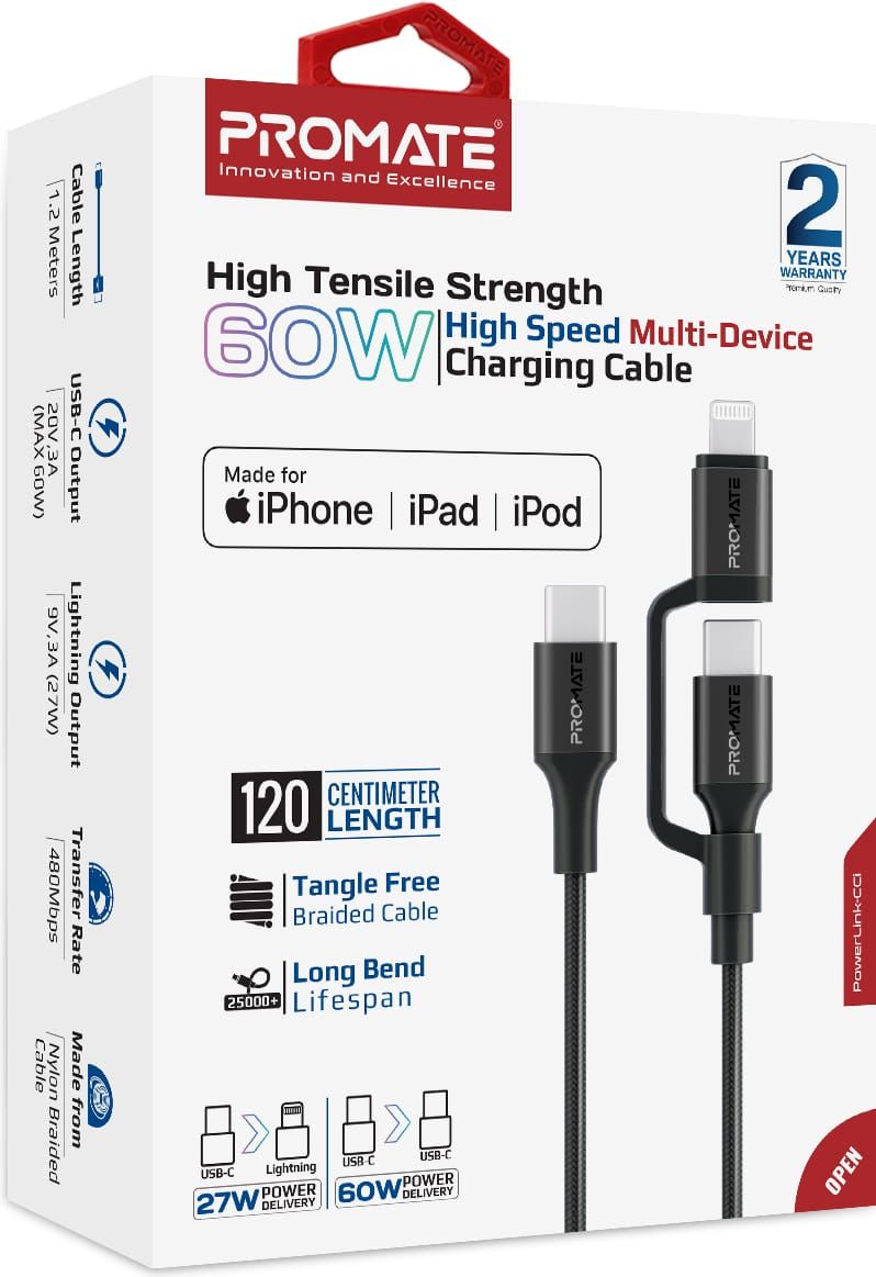 Promate PowerLink-CCi - кабель з роз’ємами USB-C, Lightning для заряджання усіх твоїх пристроїв.