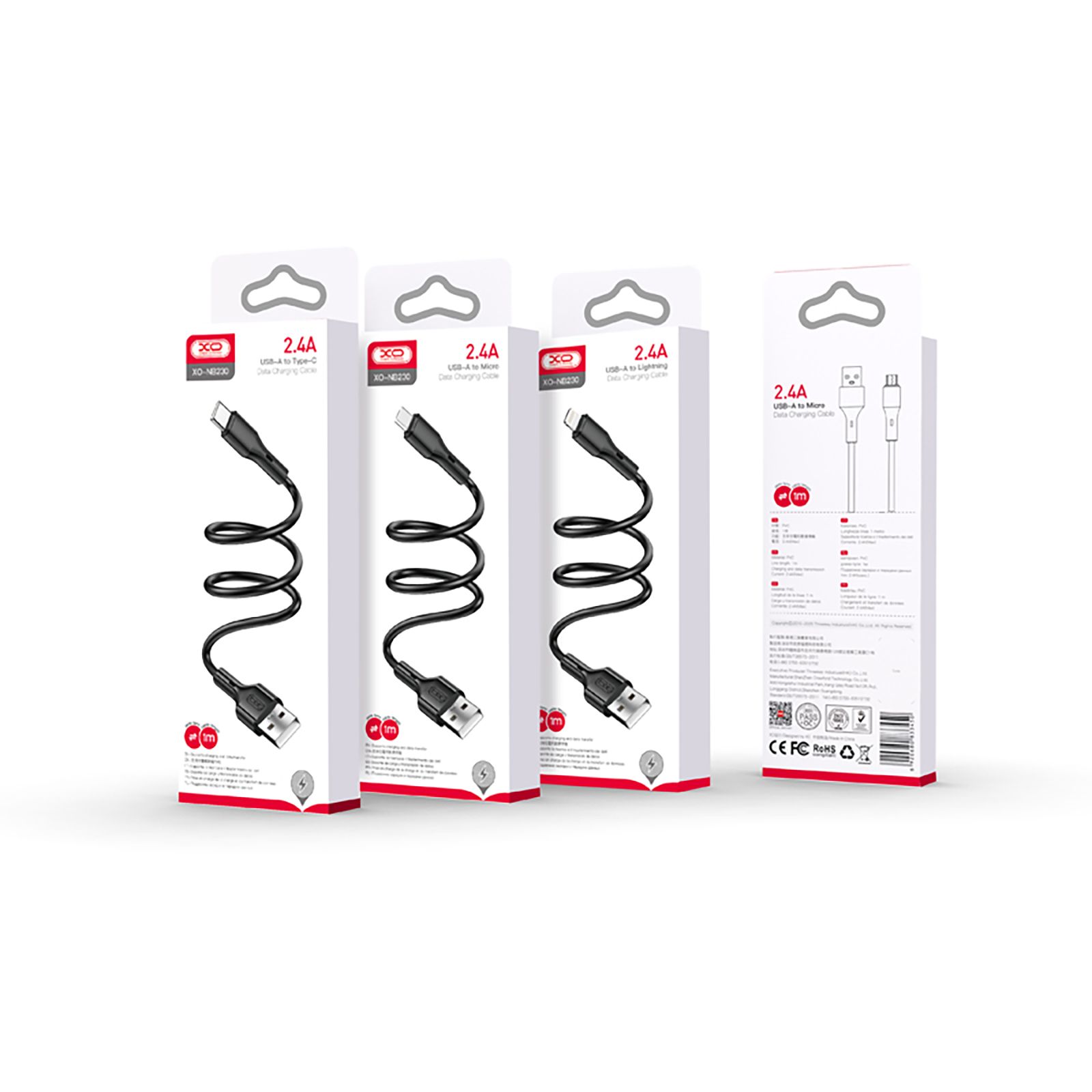 Кабель XO NB230-AC USB-A to USB-C 2.4А 1 м Black (nb230-ac.black)