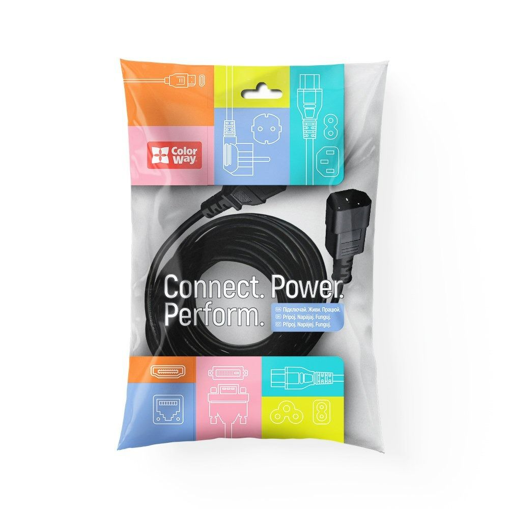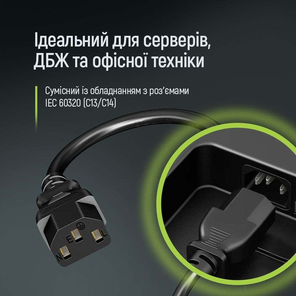 Кабель живлення ColorWay C13 – C14 призначений для підключення або подовження живлення серверного обладнання, джерел безперебійного живлення (ДБЖ), комп’ютерної та офісної техніки, а також іншого обладнання з роз’ємами C13 та C14 (IEC 60320). Він забезпечує надійне з’єднання та стабільну подачу електроенергії для критично важливої техніки.