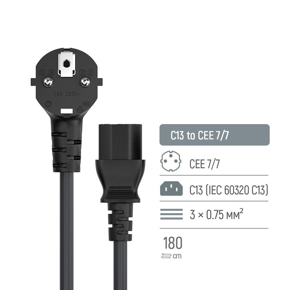 Кабель живлення ColorWay CEE7/7-C13, 1.8 м, Black (CW-CBP082-BK)