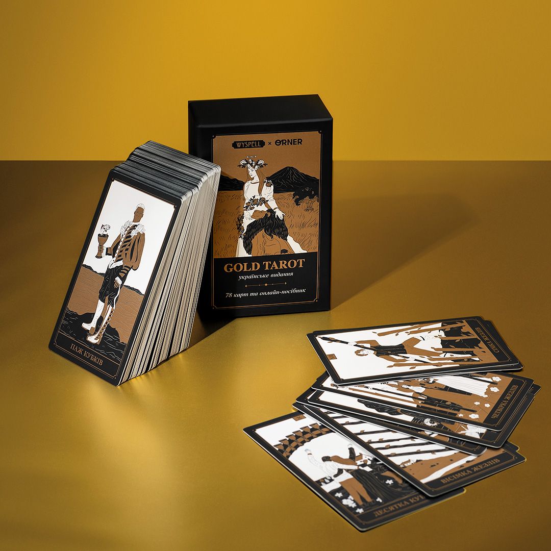 «Золота колода» — про ворожіння із особливим вайбом. Вона виконана у чорно-золотих тонах, проте її символічна основа збережена максимально наближеною до оригінала.
