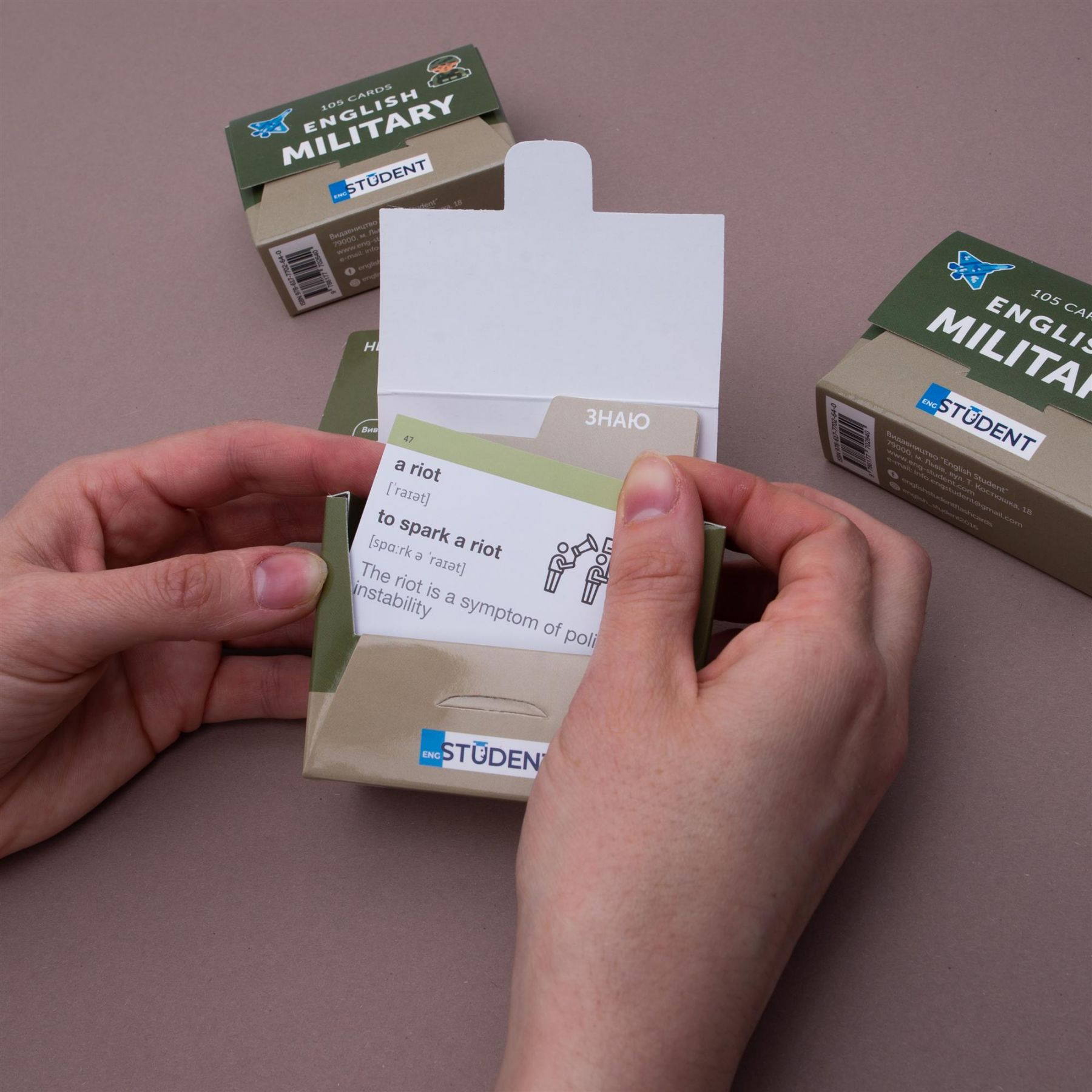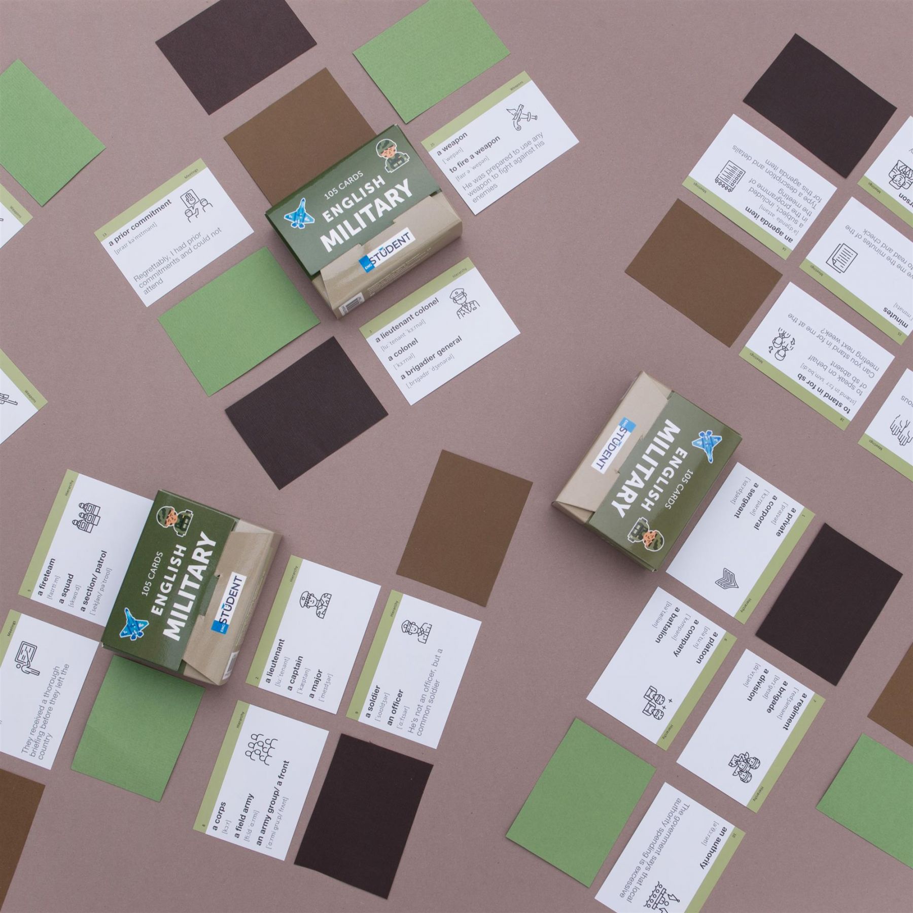 Картки «Military English» — це англійська для військових. Набір із військовою лексикою підходить для курсантів, солдатів, офіцерів та всіх інших, які так чи інакше дотичні до армійської справи.