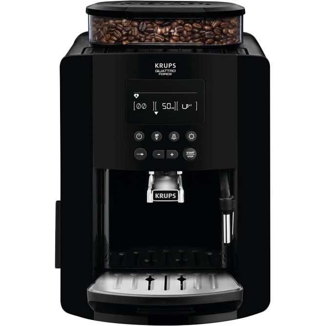 KRUPS Arabica – це компактна автоматична кавомашина з безкомпромісними стандартами якості, створена для приготуванняриготовления кави та еспресо з найбільш чистим та насиченим смаком. Насолоджуйтесь еспресо та молочними кавовими напоями в домашніх умовах та насолоджуйтесь всіма зручностями компактної конструкції без жодних компромісів з місткістю. Система Quattro Force забезпечує видатні результати, що розкриваються чудовим смаком і ароматом кави, вмістивши повний набір необхідних функцій в одній простій та компактній кавомашині. Інтуїтивно зрозумілий великий LCD-дисплей забезпечує легке управління кавомашиною, пропонуючи нам 3 рівня температури та 3 ступені помолу для налаштування напоїв. Завдяки зручному режиму запису ваших улюблених рецептів, KRUPS Arabica день за днем готуватиме ваш улюблений напій саме так як вам подобається.