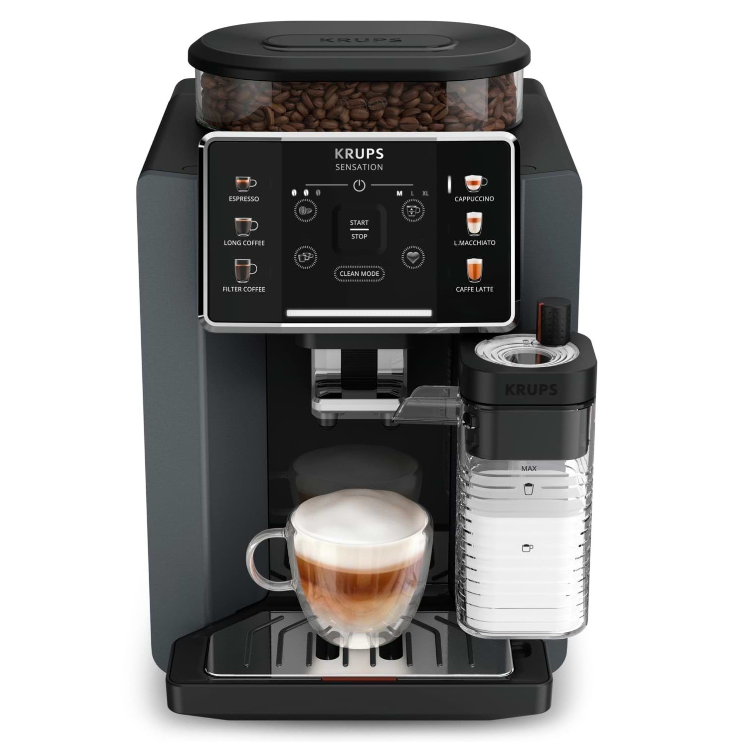 Інтуїтивний інтерфейс в KRUPS відкриє швидкий і простий доступ до всіх налаштувань процесу заварювання за допомогою кольорових піктограм та сенсорної технології управління. Завдяки широкому вибору додаткових функцій ви зможете легко налаштовувати кожну порцію кави, підбираючи оптимальну міцність і кількість молочної піни в стакані. Окремі кнопки для обслуговування молочної системи та блоку заварювання забезпечать більше комфорту та економію часу.