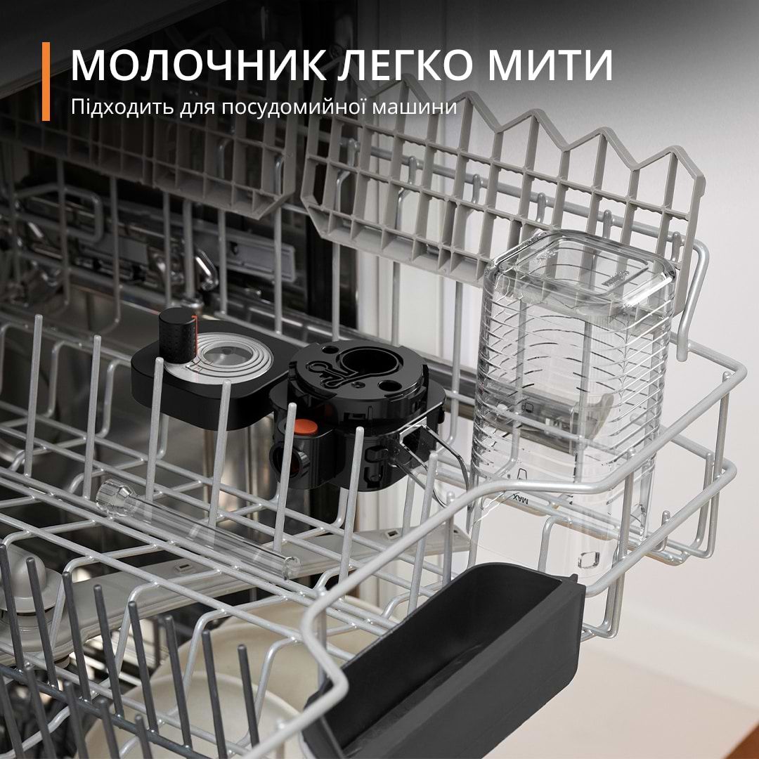 Інтуїтивна і проста система фіксації дозволить встановлювати капучинатор однією рукою та одразу приступати до заварювання вашої неймовірної кави.