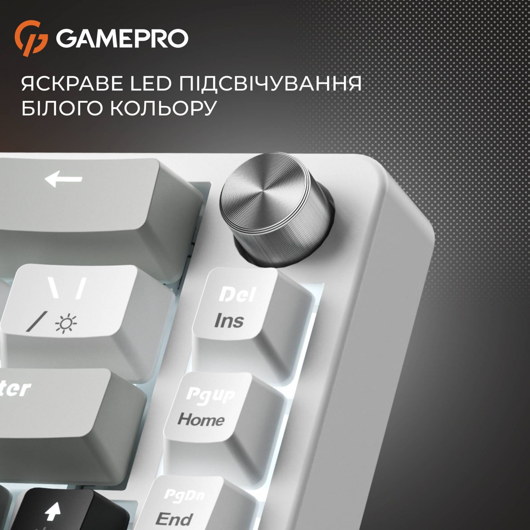 Механічна клавіатура Gamepro Genesis Silverlight — це компактна і потужна клавіатура 65% форм-фактора, яка поєднує елегантний дизайн і високу продуктивність. Її ергономічний розмір забезпечує зручність і ефективність при використанні, зберігаючи всі важливі функції, що потрібні для роботи та гри.