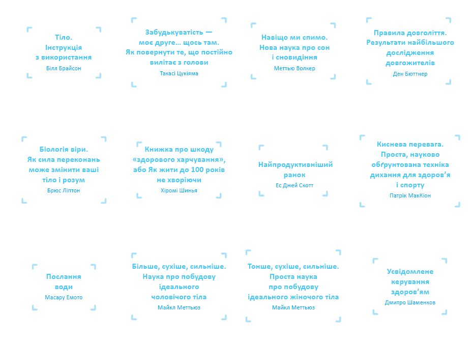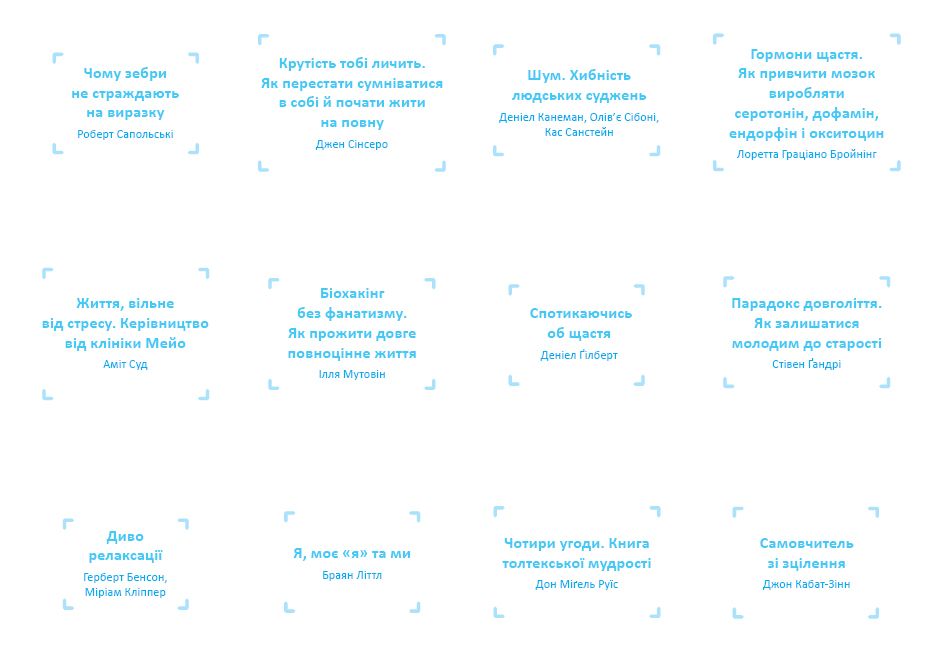 До кожної збірки увійшло 12 самарі визнаних міжнародних бестселерів: