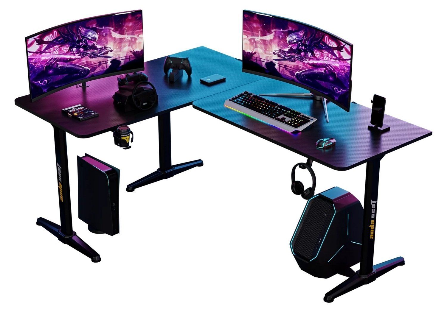 Надзвичайно широкий робочий стіл 160 x 60 см PLU L-подібної форми, ергономічний дизайн вигнутої поверхні, насолоджуйтеся роботою, не притискаючись до живота, насолода від гри та перемога.