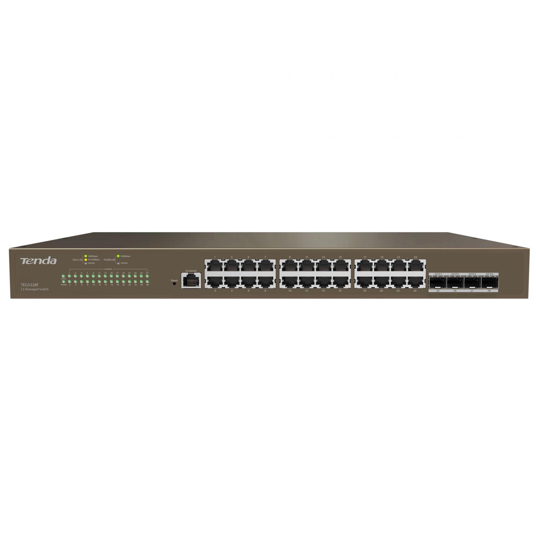 TEG5328F - керований комутатор Tenda третього рівня. Для забезпечення високопродуктивного доступу комутатор оснащений 24 портами Base-T Ethernet 10/100/1000 Мбіт/с та 4 окремими портами Base-X SFP 1000 Мбіт/с. Завдяки інноваційній апаратній структурі та програмній платформі, він має високу обчислювальну потужність та комплексний механізм захисту, що спрощує управління та обслуговування, повністю задовольняючи вимогам до доступу з високою щільністю користувачів та високопродуктивної агрегації. Ідеально підходить для рівня агрегації або рівня ядра мереж середнього та великого розміру, таких як корпоративні мережі та кампуси.