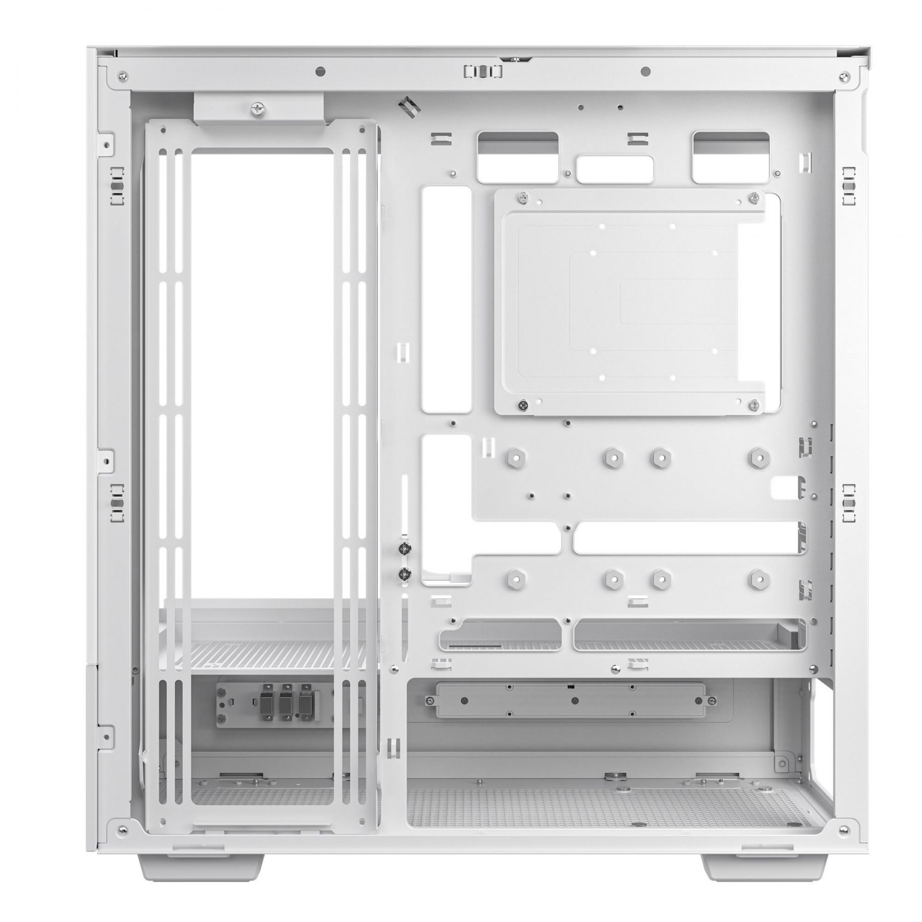 DeepCool CH690 Digital - розроблений з урахуванням краси та адаптивності, оснащений напівскляною панеллю, яка забезпечує широкий огляд встановлених компонентів. Для тих, хто шукає покращену продуктивність, задня панель корпусу підтримує самостійні модифікації, що дозволяє користувачам замінити напівскляну панель сітчастою панеллю та кронштейном вентилятора для посилення горизонтального потоку повітря. Крім того, вбудований слот для світлової стрічки дозволяє додавати світлові стрічки для створення захопливої ігрової атмосфери, поєднуючи естетику з функціональністю для справді персоналізованої конфігурації.
