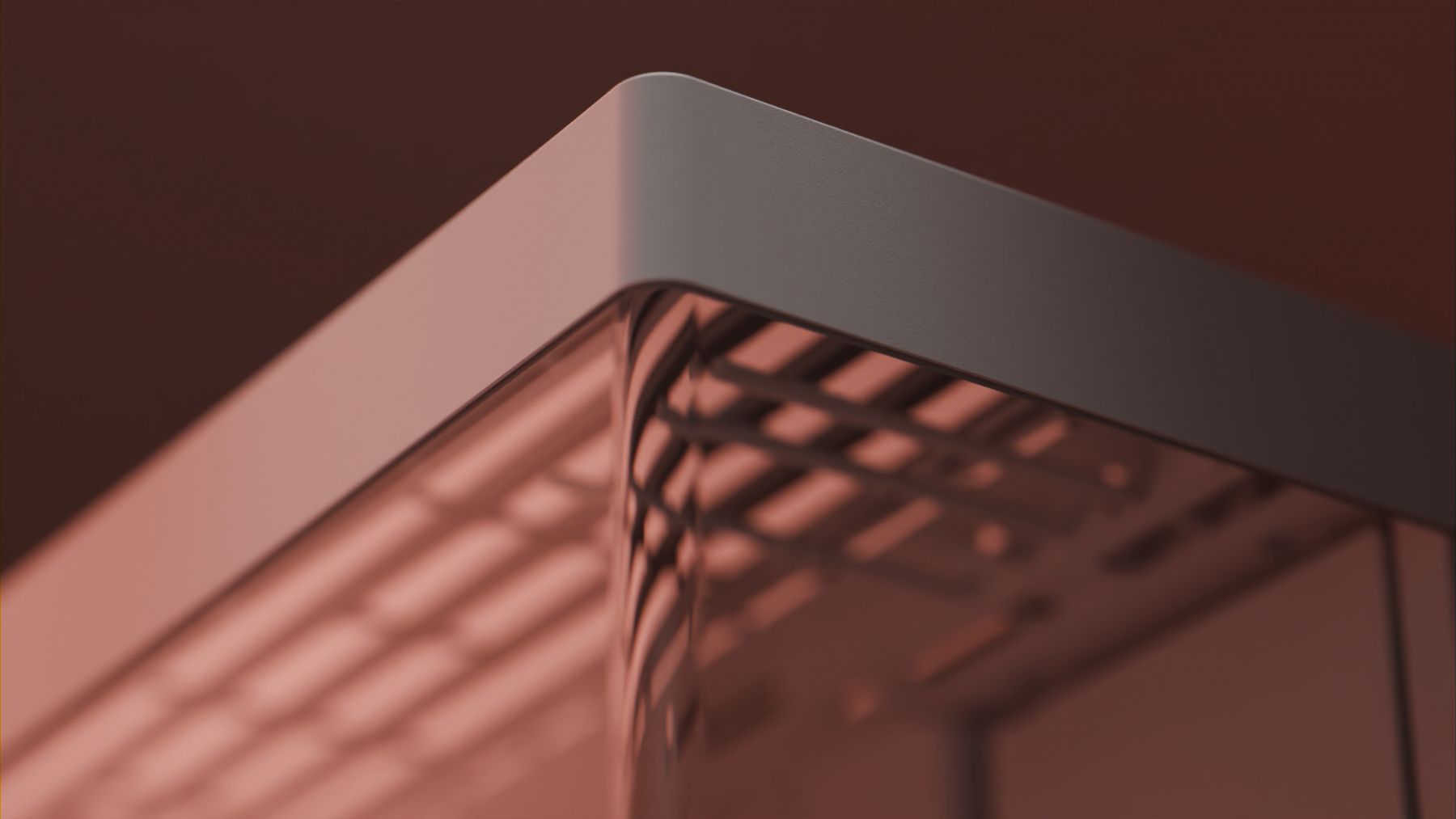 Термоформована скляна панель UniSheet для панорамного огляду. Було кинуто виклик обмеженням виробництва, щоб створити найменший можливий радіус вигину та мінімізувати візуальні спотворення, забезпечуючи користувачеві чіткий огляд внутрішньої частини корпусу.
