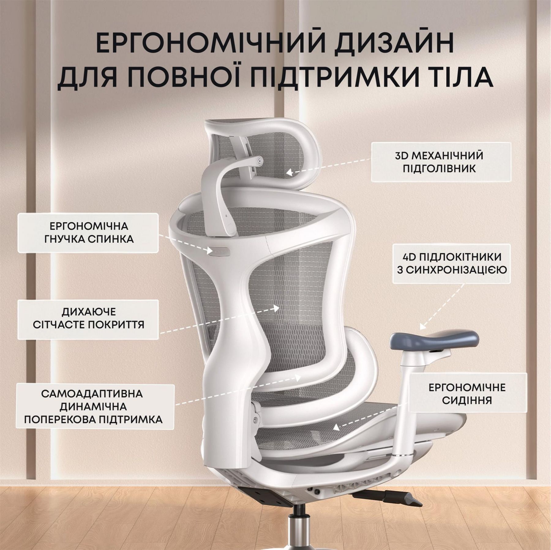 Крісло офісне Sihoo Doro C300L Mesh White DORO-C300L-A3-102)