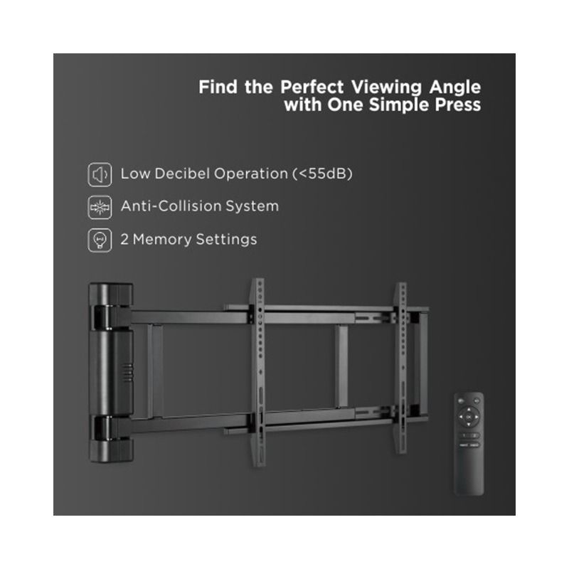 Знайдіть ідеальний кут огляду одним простим натисканням. Моторизоване поворотне кріплення для телевізора призначене для більшості телевізорів з діагоналлю 32"-75" та вагою до 50 кг.