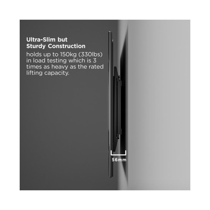 Безшумний моторизований механізм забезпечує плавне позиціонування та рух. Система запобігання зіткненням захищає від нещасних випадків і травм. Тонка конструкція розміщена на відстані всього 56 мм від стіни. Система управління кабелями тримає все впорядкованим.