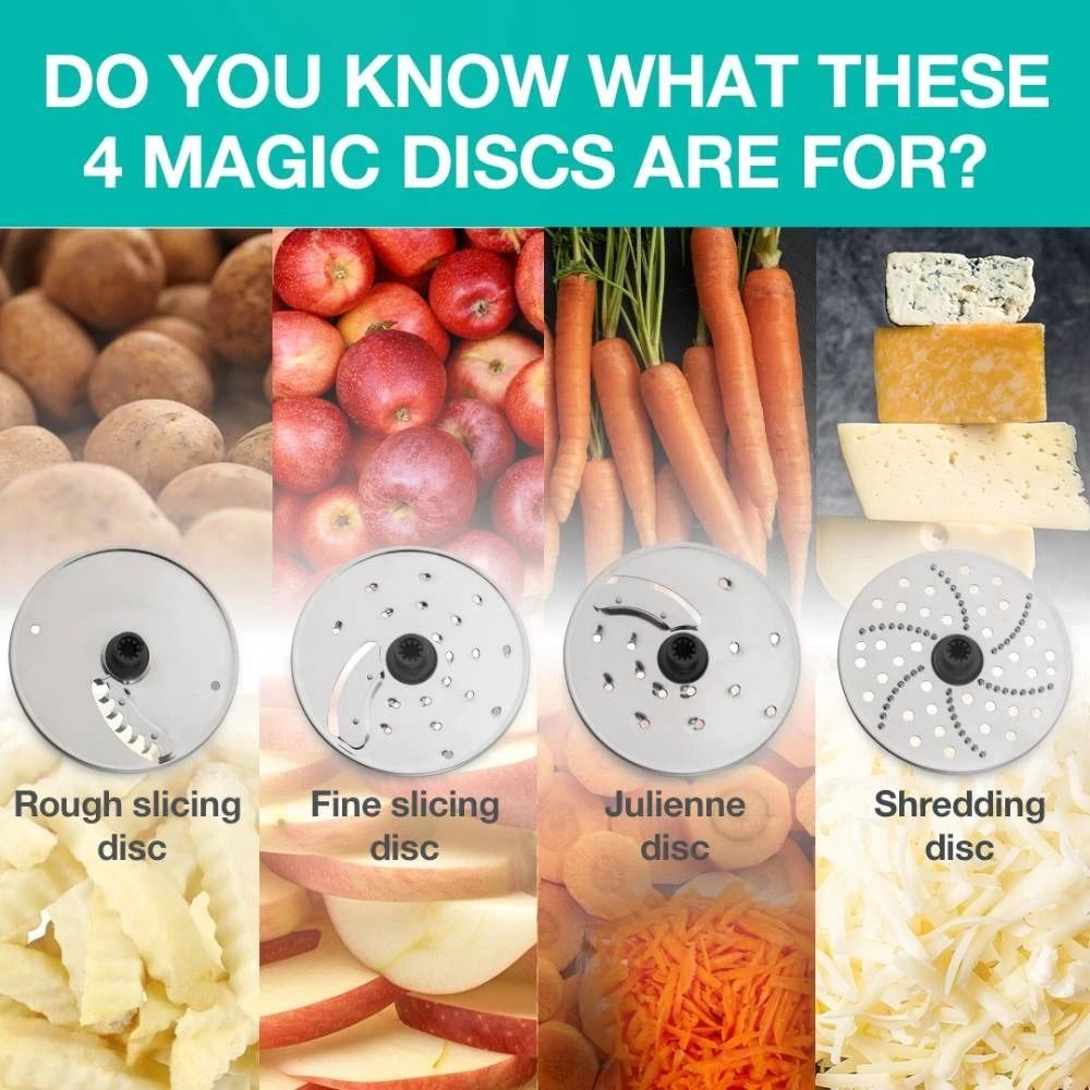 Набір дисків для нарізки - це універсальний набір з чотирьох спеціальних дисків для нарізки, які розширюють можливості вашої кухонної машини, дозволяючи нарізати, терти і шаткувати найрізноманітніші інгредієнти без особливих зусиль, точно і легко. Кожен диск призначений для конкретних завдань – нарізати овочі для салату, подрібнити сир для начинки, натерти моркву для пирога чи приготувати картоплю фрі ідеальної форми – цей набір подолає будь-яке завдання.