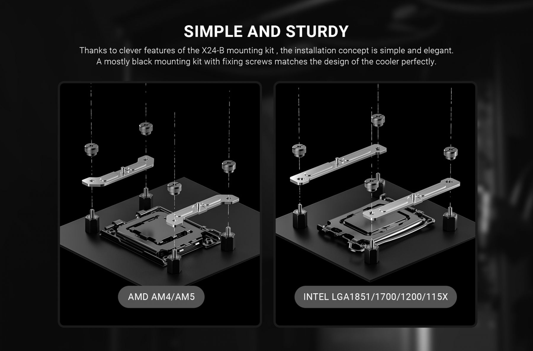 Оснащений шістьма 6-міліметровими мідними тепловими трубами, які забезпечують максимальну теплопровідність, ефективно відводячи тепло від основи до радіаторних пластин.