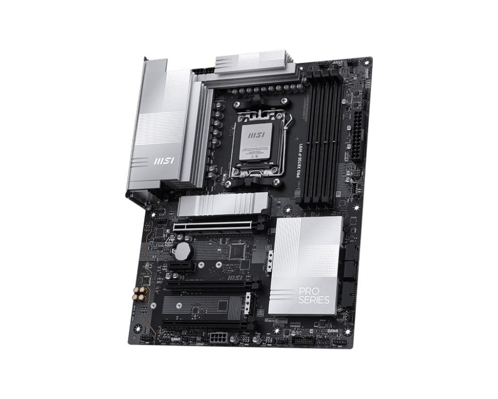 MSI PRO X870E-P WIFI — це високопродуктивна материнська плата формату ATX, розроблена для професійних користувачів та ентузіастів. Вона підтримує процесори AMD Ryzen 7000, 8000 та 9000 серій з роз'ємом AM5 та оснащена сучасними технологіями для забезпечення стабільної роботи в інтенсивних умовах.
