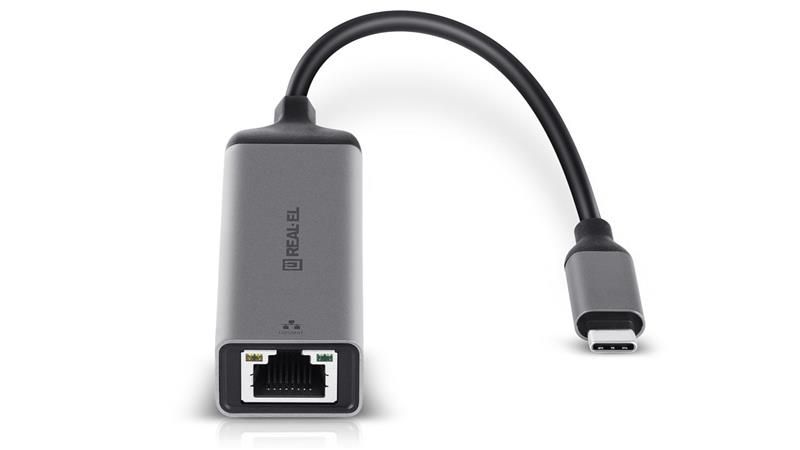 Мережевий адаптер REAL-EL CE-150 USB Type-C - RJ45 (M/F), 0.1 м, Black (EL123110004)