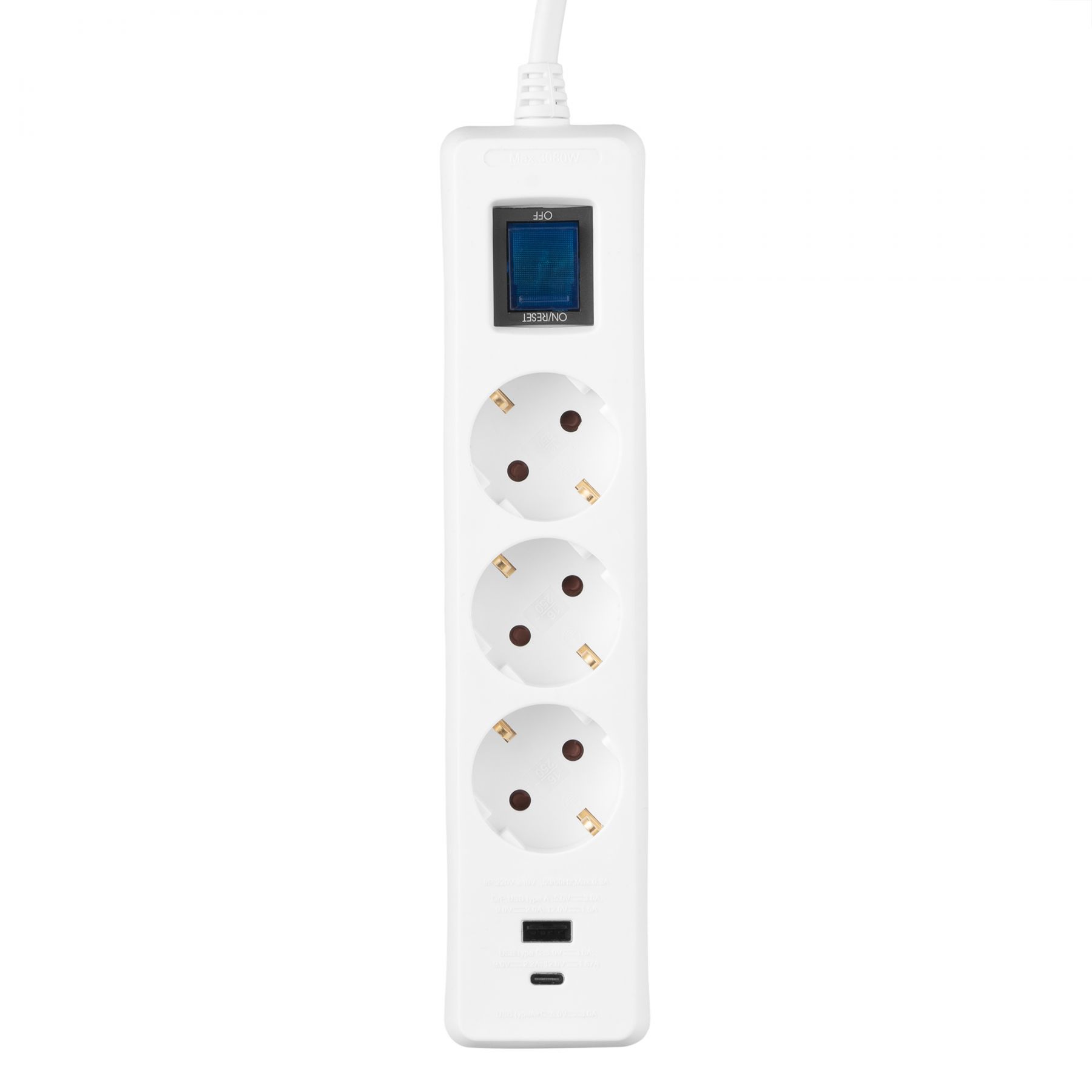 Надійний подовжувач 2Е з кабелем довжиною 3 м і перетином 1,5 мм2 витримує навантаження до 16 А. Оснащений трьома розетками типу F і додатковими роз’ємами USB-A і USB-C для швидкого заряджання мобільних пристроїв. Передбачено вбудований захист від навантаження. Практичне рішення, що поєднує функціональність та зручність для дому та офісу.