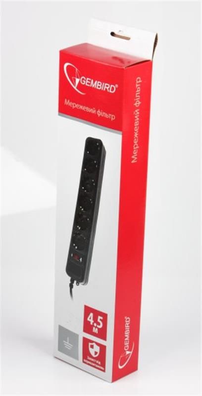Мережевий фільтр Gembird SPG6-G-15B ,чорний, 4,5 м кабель, 6 розеток
