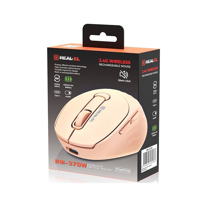 Безпровідна оптична мишка REAL-EL RM-370W поєднує комфорт, точність і сучасний функціонал.