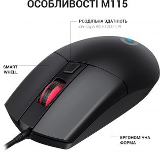 Мишка OfficePro M115 USB Black - це пристрій, який призначений для роботи з комп'ютером і має кілька особливостей.