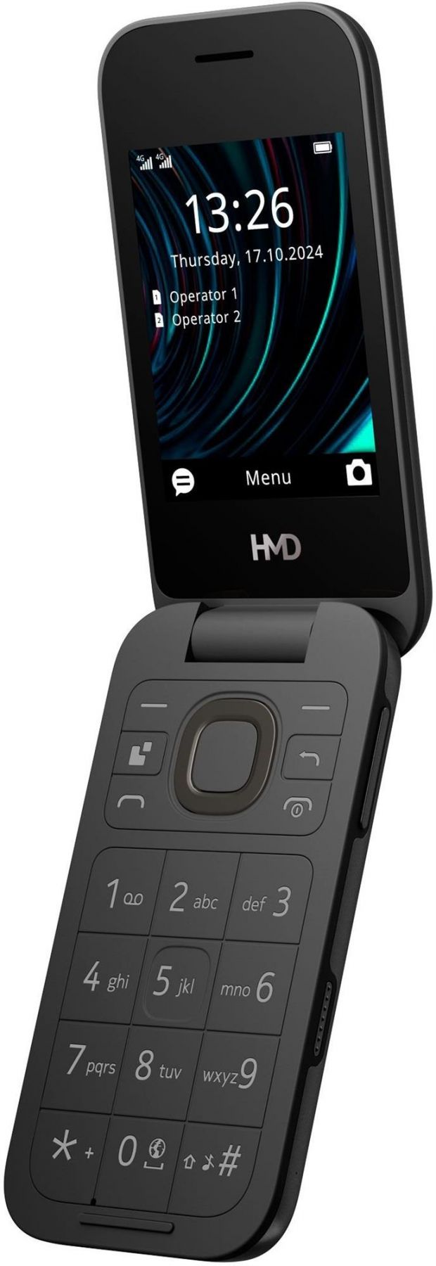 HMD 2660 Flip вирізняється елегантним дизайном із дзеркальною скляною передньою панеллю, яка додає телефону вишуканості. Завдяки розкладній конструкції відкривати телефон для відповіді на дзвінки чи закривати для завершення розмови надзвичайно зручно й ефектно. Великі кнопки, 2,8"-дюймовий QVGA-дисплей і простий у навігації інтерфейс роблять пристрій ідеальним для користувачів будь-якого віку, зокрема для людей похилого віку. Зовнішній 1,77"-дюймовий екран дозволяє бачити, хто дзвонить, не відкриваючи телефон.